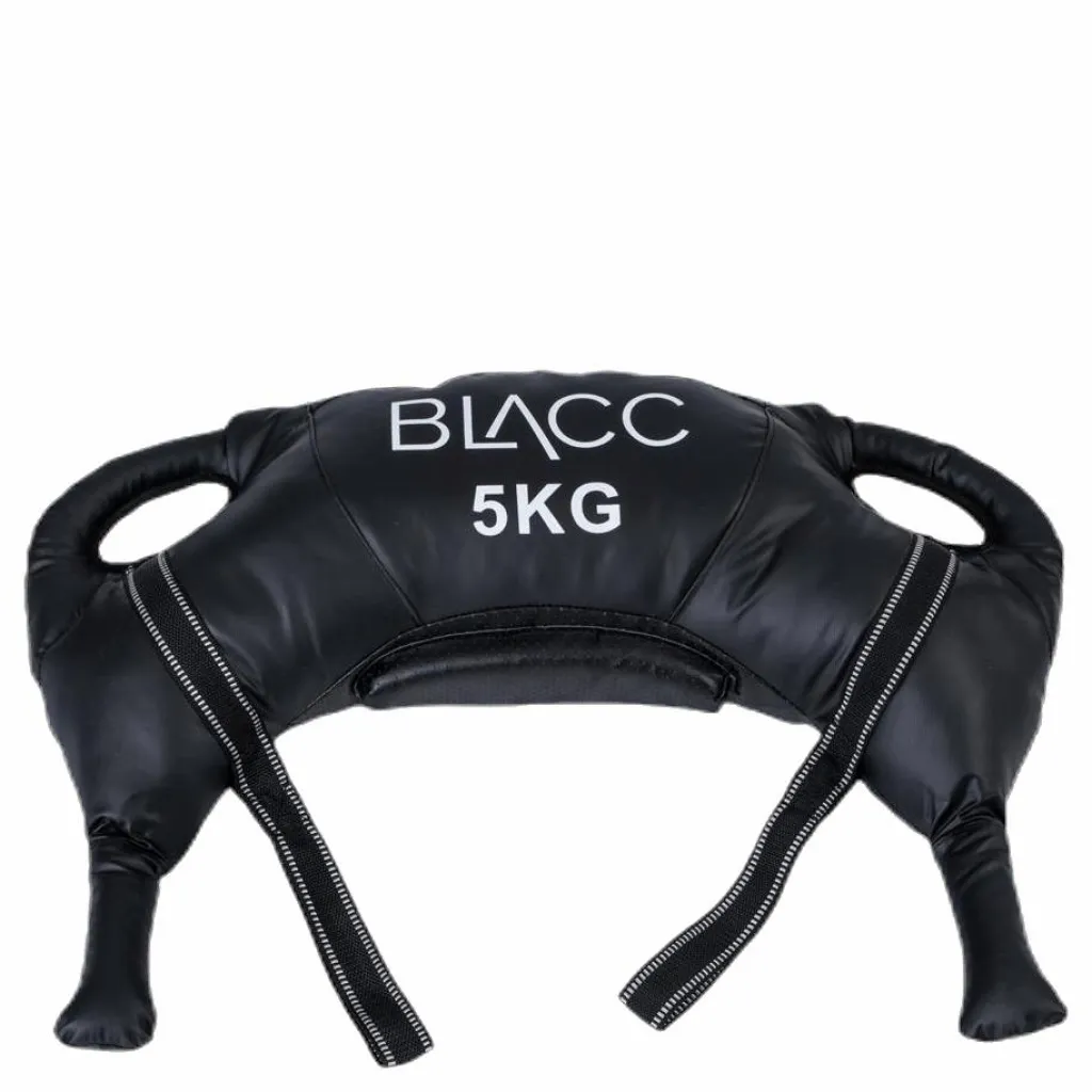 Bulgarian Bag från Blacc. Halvmånformad design med förstärkt parti på insidan för bekväm passform runt nacken. Inbyggda handtag samt straps för bra handgrepp oavsett övning. Tillverkad i slitstark PVC. Fyllning: Sand och bomull. Vikt: 5 kg.
