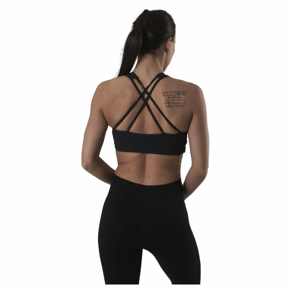 Sportbh för yoga och andra typer av träning . Fin rygg med smala korsade band. Lätt vadderad med uttagbara ilägg. Medium support. Material: 90% polyester, 10% elastan.