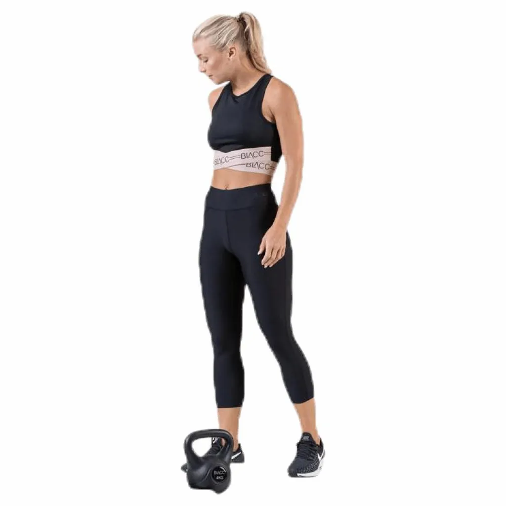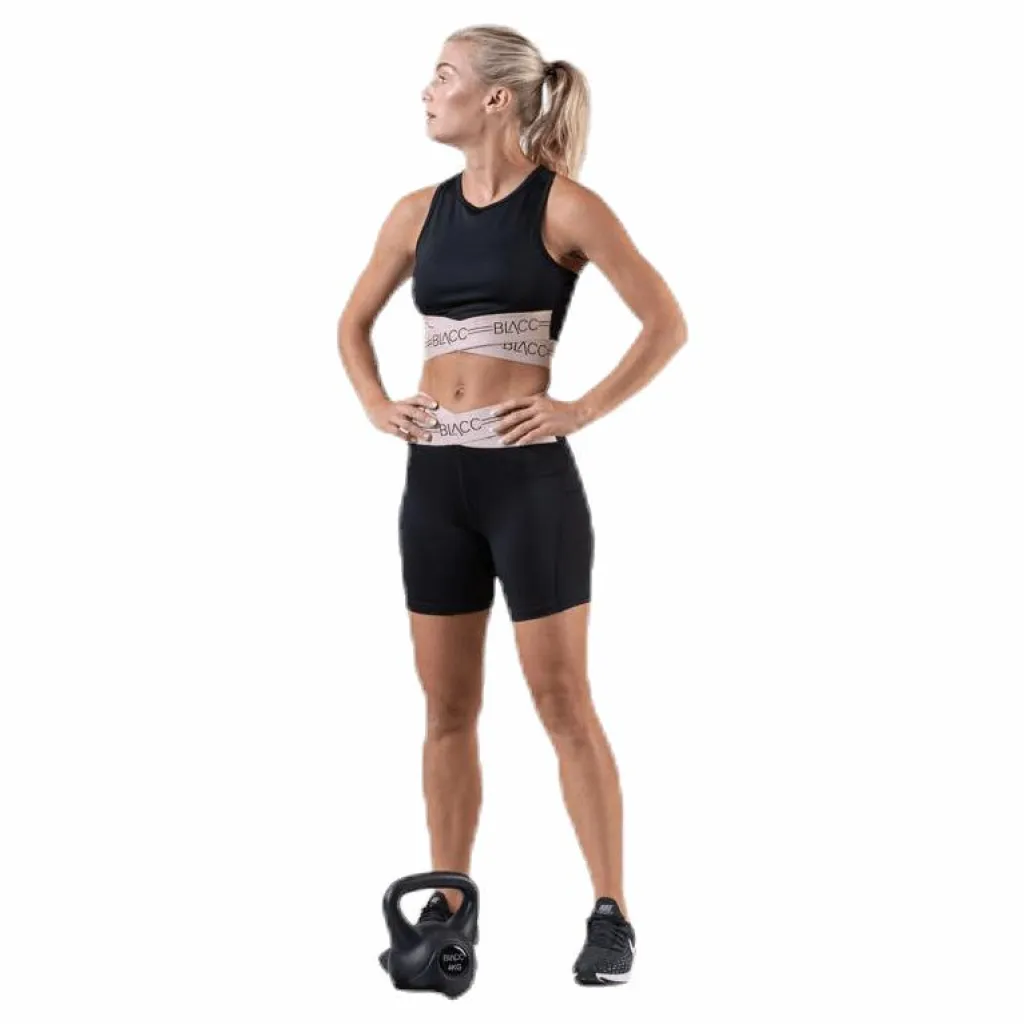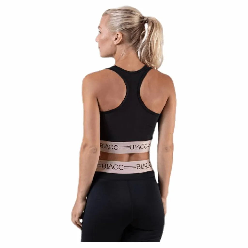 Snyggt kort linne från Blacc med brett midjeband som går omlott framtill. Denna style har inget stöd som en sport BH utan används som en top. Framsida i dubbelt tyg och baksida helt klätt i mesh för ökad ventilation. Material: 88% polyester, 12% elastan.