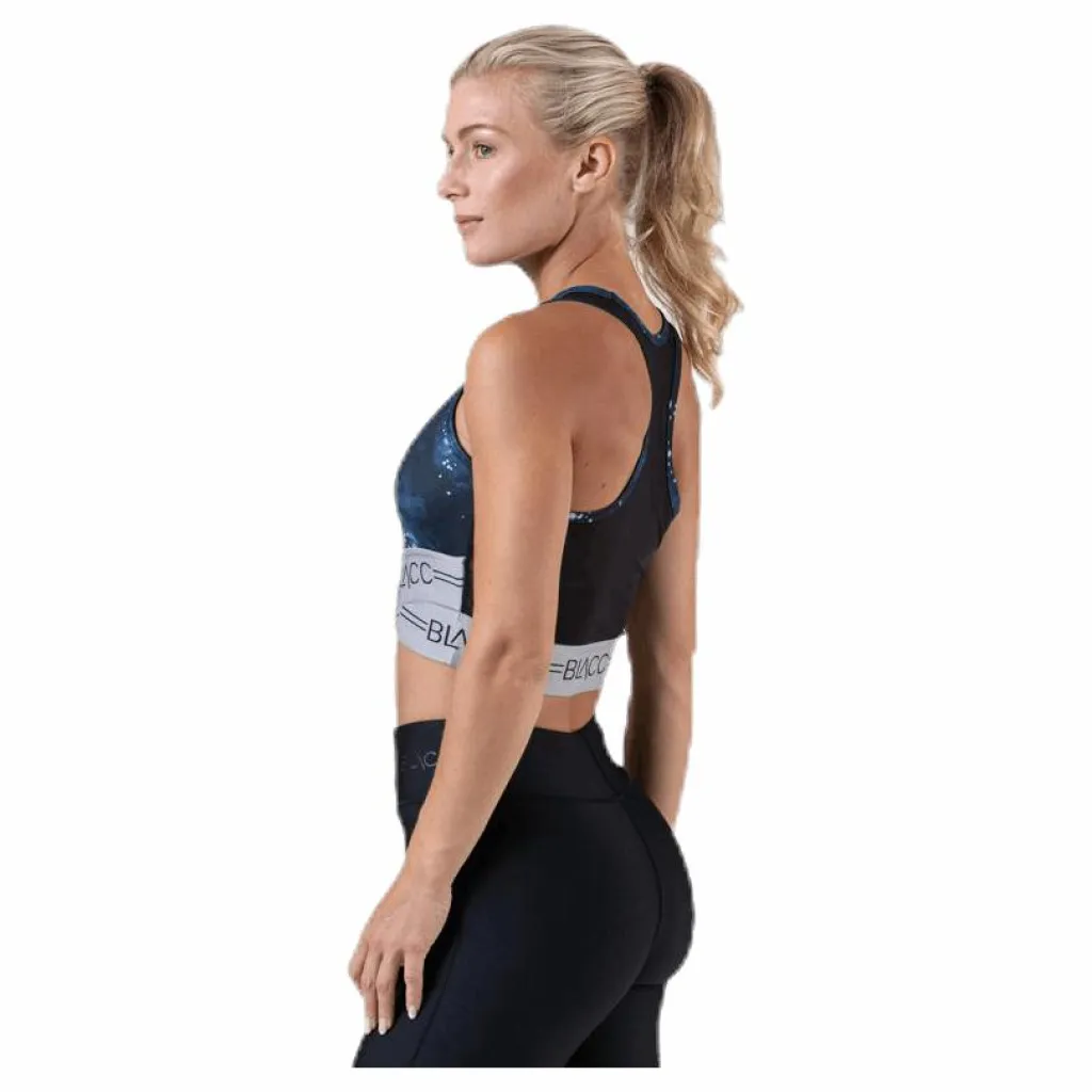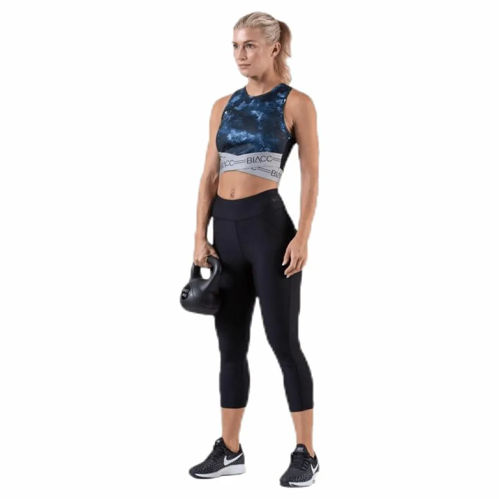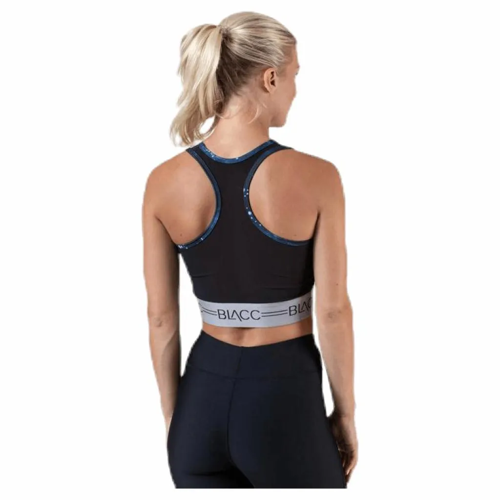 Snyggt kort linne från Blacc med brett midjeband som går omlott framtill. Denna style har inget stöd som en sport BH utan används som en top. Framsida i dubbelt tyg och baksida helt klätt i mesh för ökad ventilation. Material: 88% polyester, 12% elastan.