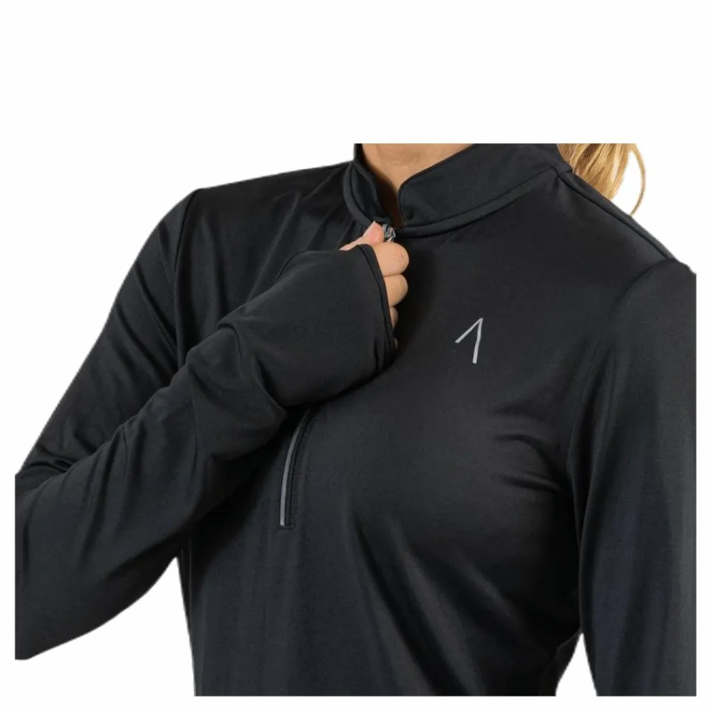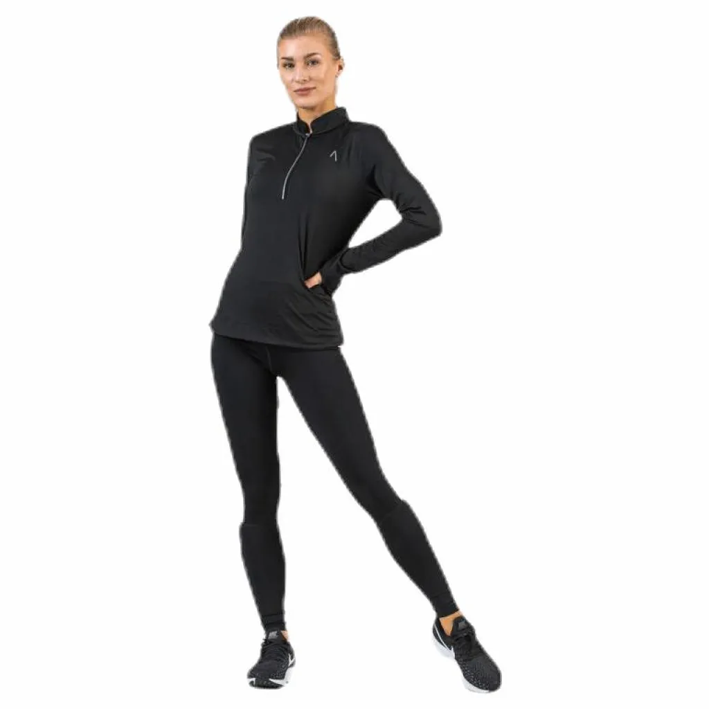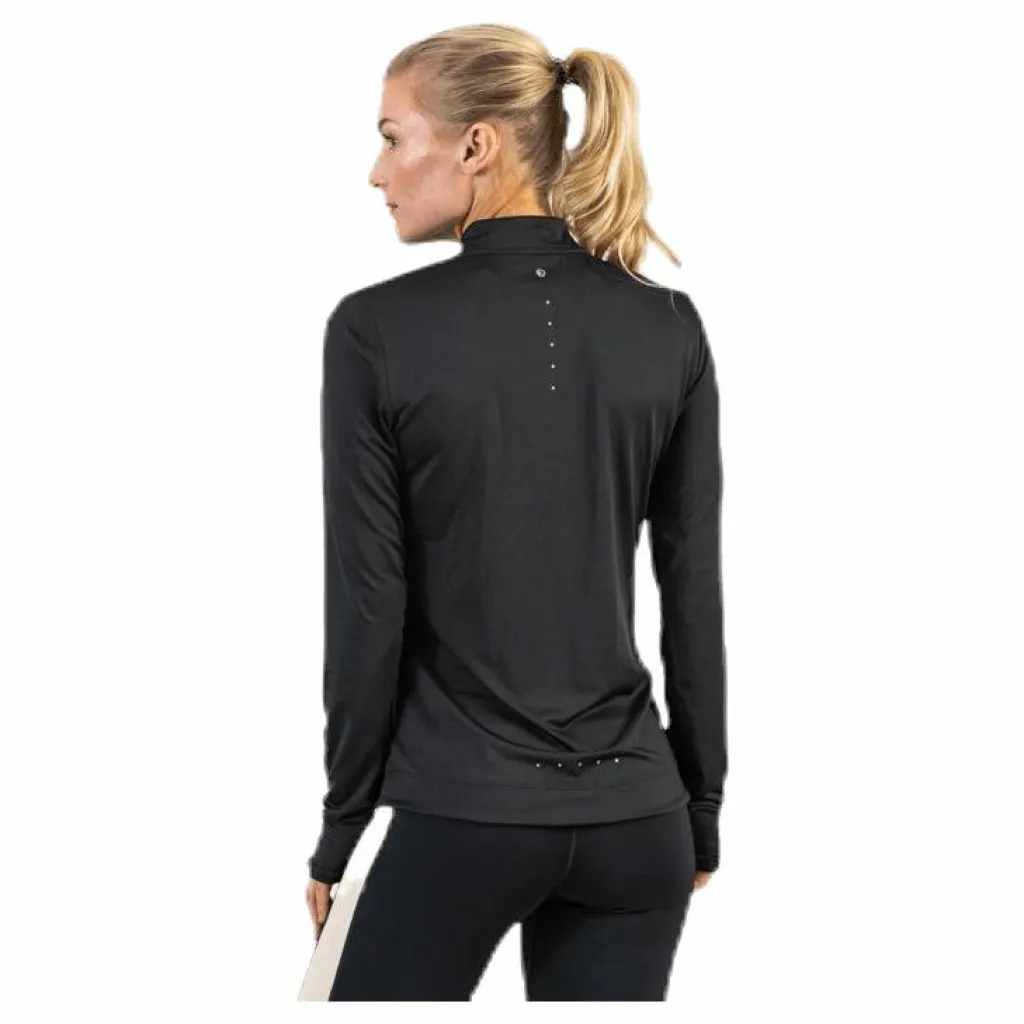 Långärmad tröja mjukt och skönt funktionsmaterial med fin siluett. Dragkedja för värmereglering och tumhål i ärmsluten. Bomber krage och ett litet hål i nacken för mediasladd. Reflexdetaljer vid zipper och i loggan framtill och fina diskreta reflexprickar på ryggen så du syns under hela löprundan. Material: 92% polyester, 8% elastan.