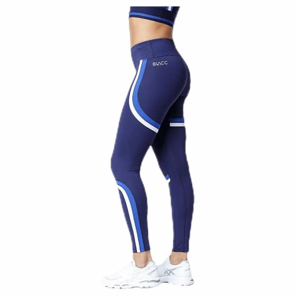 Tights i snygg design och genomtänkta detaljer. Paneler i vitt och blått formade för att ge en fin siluett. Midja med lasercut hål där det ljusblå bakomliggande tyget lyser igenom. Medelhög midja med elastiskt band som håller tightsen uppe. Passar flera typer av träning. Material: 77% nylon, 23% elastan.