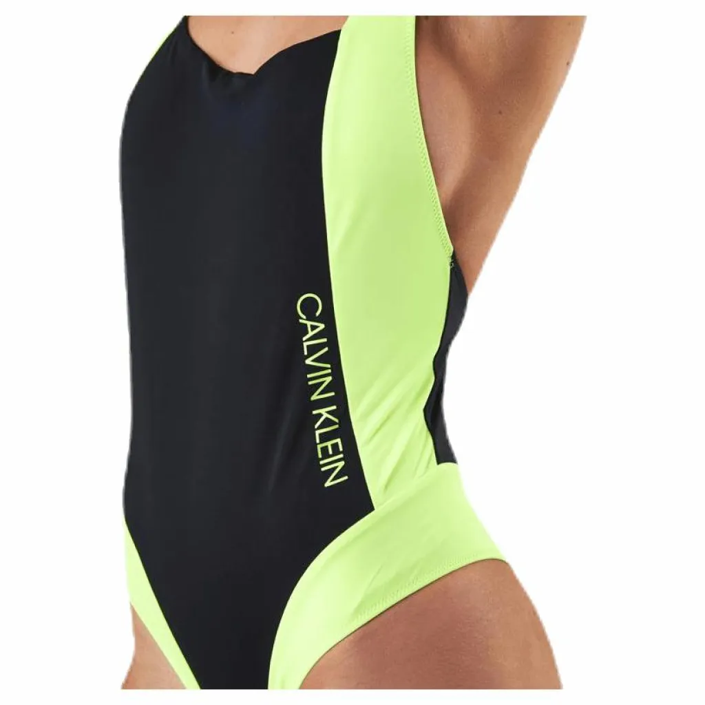 Calvin Klein Ck Blocking Plunge Back Swimsuit Black/Yellow* Simning|Badkläder