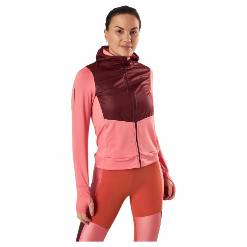 ADV Charge är en lätt, vattenavvisande, löparjacka som har helt tejpade sömmar och en bröstficka med dragkedja. Huvan dras in i kragen på jackan och kan stoppas undan när den inte används.