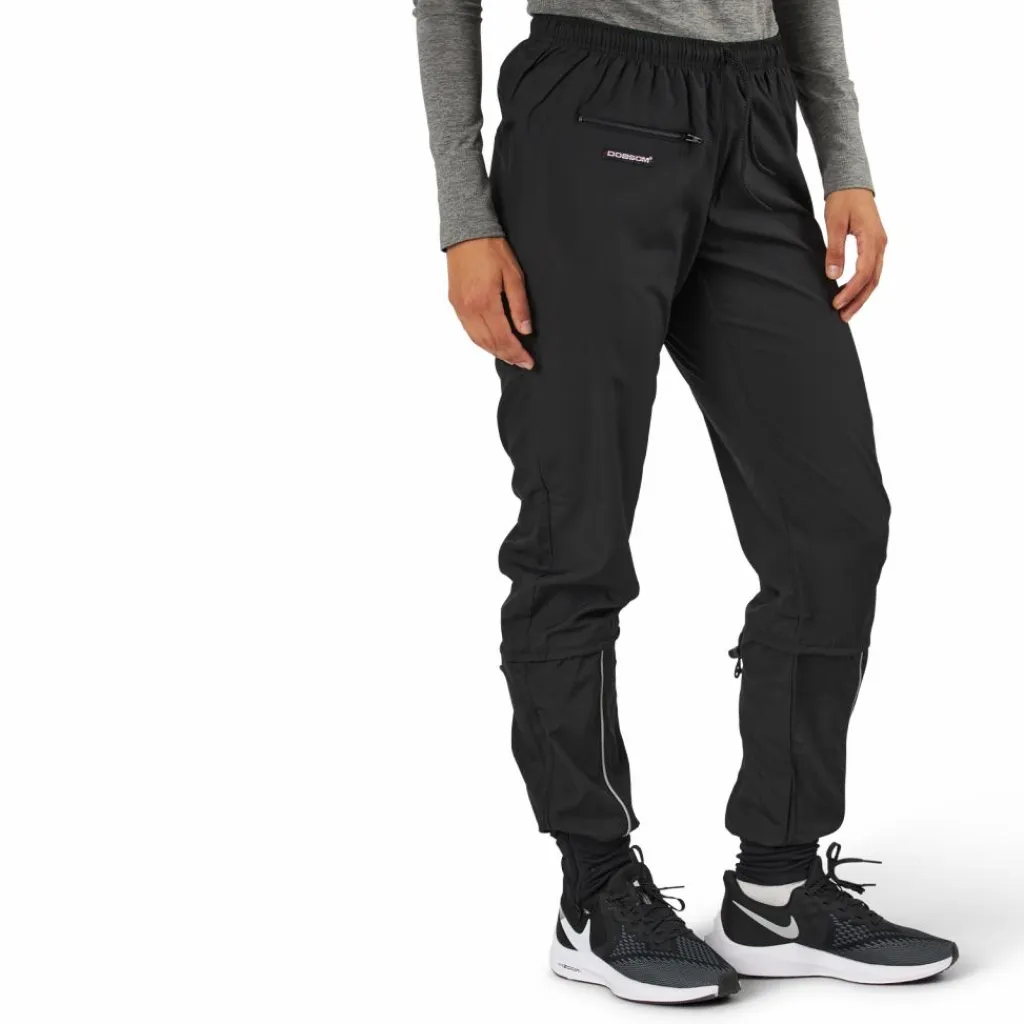 Vindtät byxa med dragsko under knäet för bättre löpkänsla. Långa muddar, dragkedjor i benavsluten, en dragkedjaförsedd ficka på ena benet och reflexdetaljer. Tillverkad i ett lätt och smidigt material. 100% polyester. Dammodell.