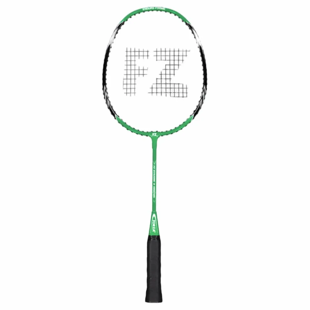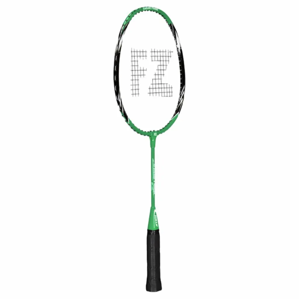 En racket med aluminiumram och stålskaft med T-joint. Ett starkt och hållbart nybörjarracket.