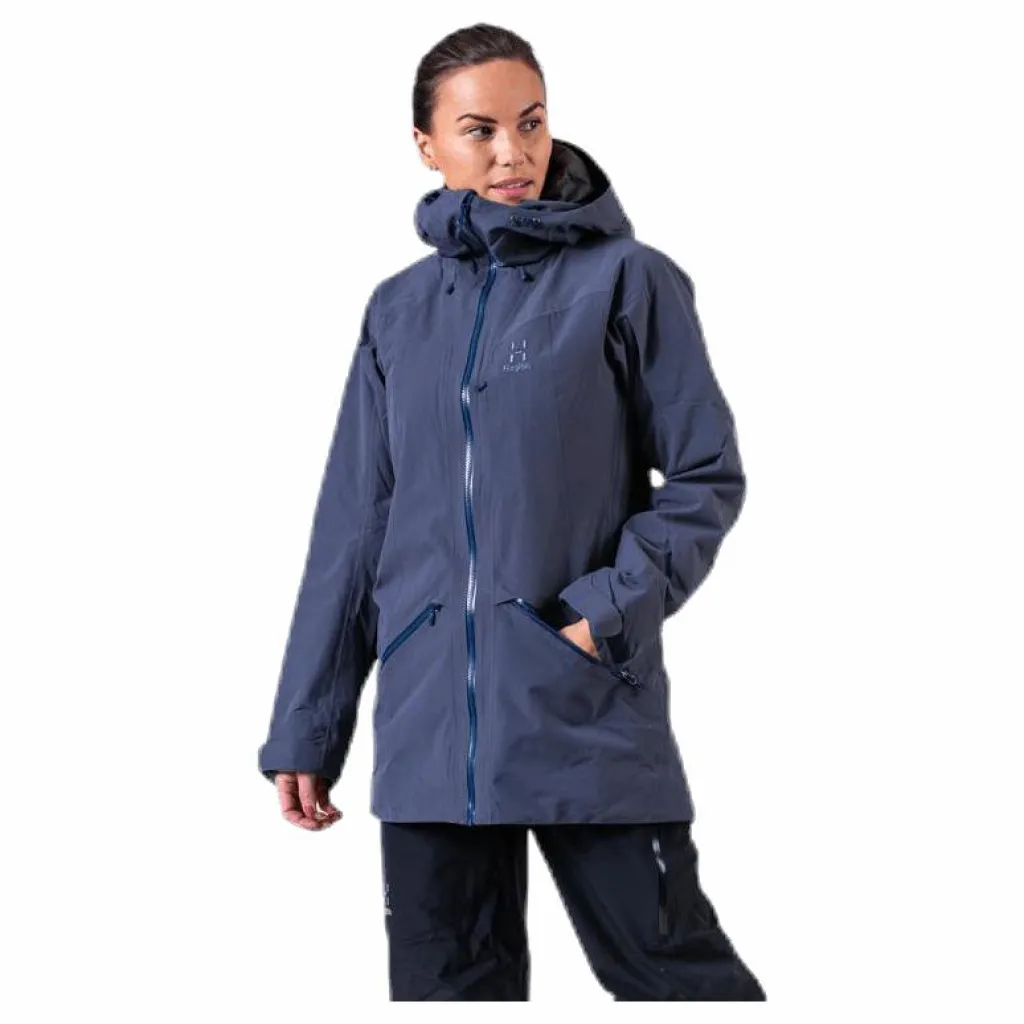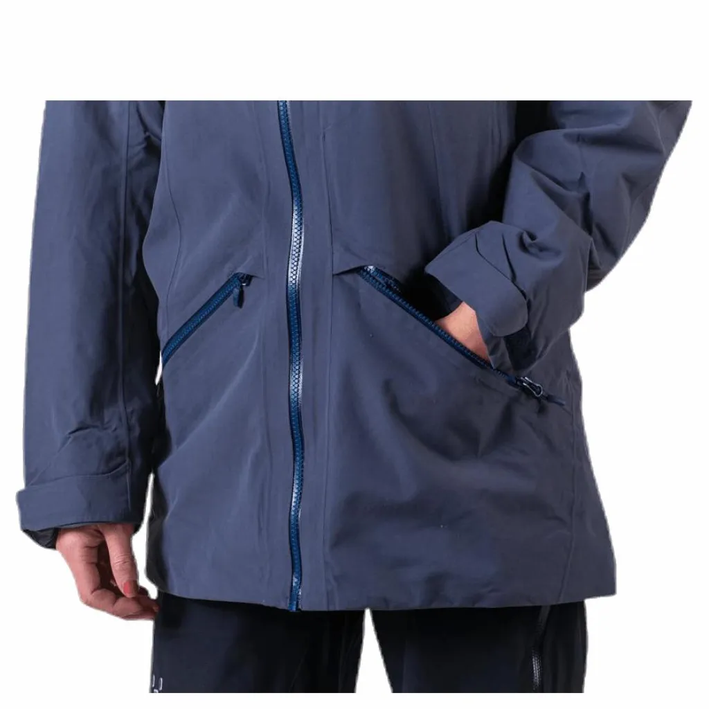 Det här är en längre, fullt utrustad och isolerad jacka som är tillverkad för snöaktiviteter med bra skydd mot naturens element. bluesign®-godkänd och tillverkad i två PROOF™-lager som ger ett effektivt skydd medan QuadFusion+™ med 100 % återvunnen isolering håller dig varm och glad. Den kommer låta dig pusha dig lite längre, på och utanför berget.Vattentät och isolerad med QuadFusion™ som ger en optimal balans mellan värme och komfort Utvecklad med skidåkning i åtanke, med en hjälmkompatibel huva och ärmfickaFörstärkta sektioner på axlar, ärmar, baksida och höftTvå låga blixtlåsförsedda handfickorTrevägs justerbar huva med laminerad skärmVentilationsblixtlås som förbättrar luftflödetRygglängd mitten 80 cm (damstorlek M)PROOF™ 2-layer, 100% Polyamide, cotton-like durable 160D oxford weave, 152 g/m², bluesign® approvedHydrostatic head: >15,000 mm; Moisture Permeability (inverted cup): >15,000 g/m²/24hInsulation: QuadFusion+™ 100% Recycled Polyester insulation, with microlayers of moisture managing multichannel fibres and warming crimped hollow fibres to maximize warmth, 80 g/m² (torso) + 40 g/m² (sleeves), bluesign® approved