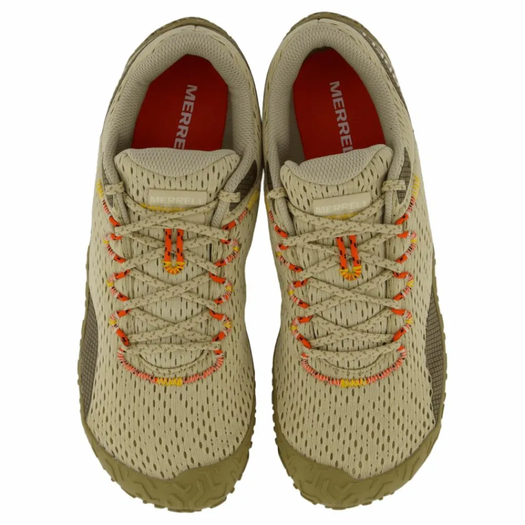Ovandel i 100 % återvunnet mesh, 100 % återvunna snören och webbing, Merrell Barefot 2-konstruktionen är designad för att hålla foten i en naturlig position, Vibram Ecostep-yttersula med 30 % återvunnet gummi.