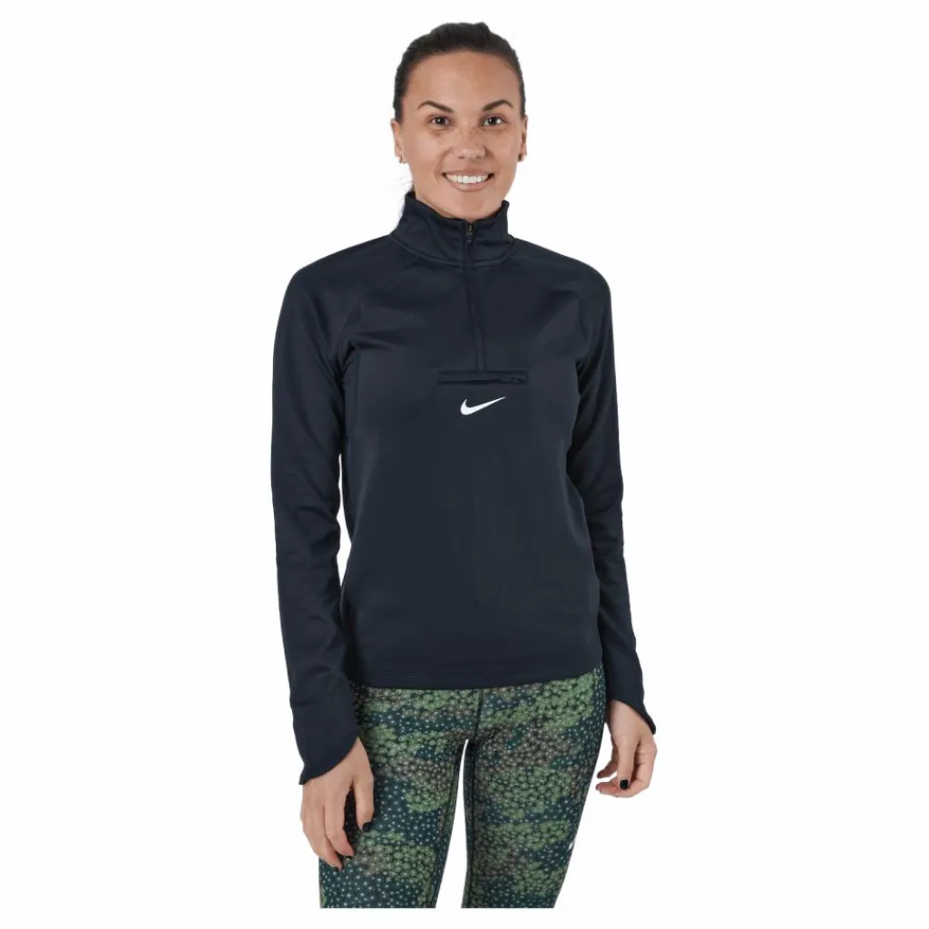 Din löprutin tar dig genom dammiga stigar och bergig terräng. Nike Trail Dri-FIT Element Midlayers håller dig där ute med lätt värme, anpassad för de förhållanden som du kan stöta på på de där bakvedsvägarna. Vi var besatta av detaljerna och lade till utdragbara vantar för att hålla händerna täckta när kylan slår till. Behöver du ta med dig nyckel eller kort? Förvara dem i den lättåtkomliga fickan. Du är sugen på att ta dig ut på vägen, så gör det med trygghet av komfort.