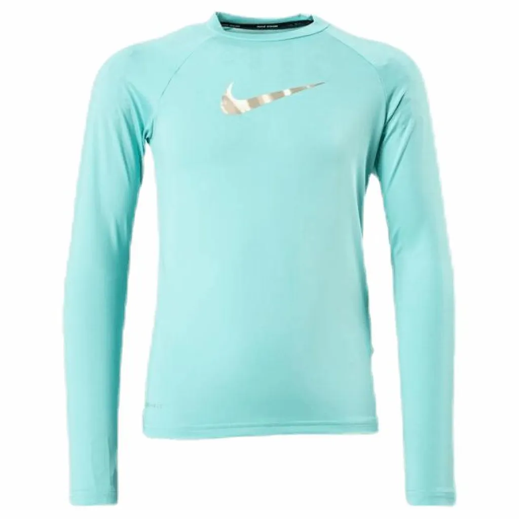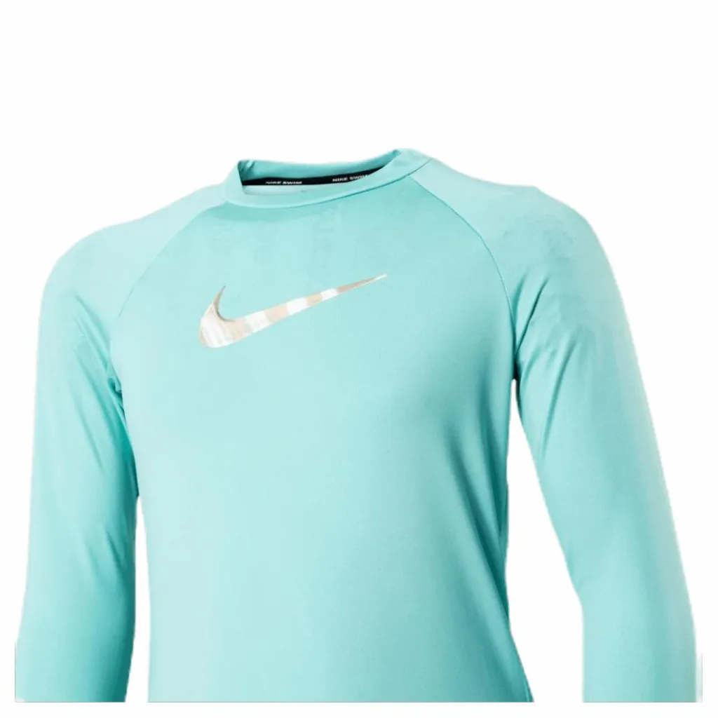 Nike Swim Iridescent Swoosh Long Sleeve Hydroguard ger fullt skydd för överkroppen mot exponering av sol och vind. Perfekt för bad och vattensporter tack vare sitt UPF 40+ UV-skydd. Plana sömmar ger dessutom skön komfort och det stretchiga Dri-FIT-tyget garanterar snabb torktid. • Dri-FIT teknologi som hjälper dig att hålla dig torr • UV-skydd (UPF 40+) • Plana sömmar för skön komfort • Material: 91% Polyester, 9% Spandex