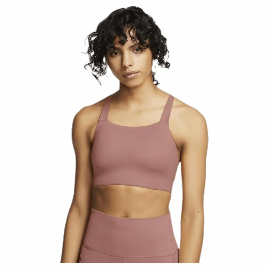 The Nike Swoosh Luxe Sports Bra is made of ultra soft fabric with Dri-FIT technology. The smooth, strappy design includes built-in cups for breathability and support.