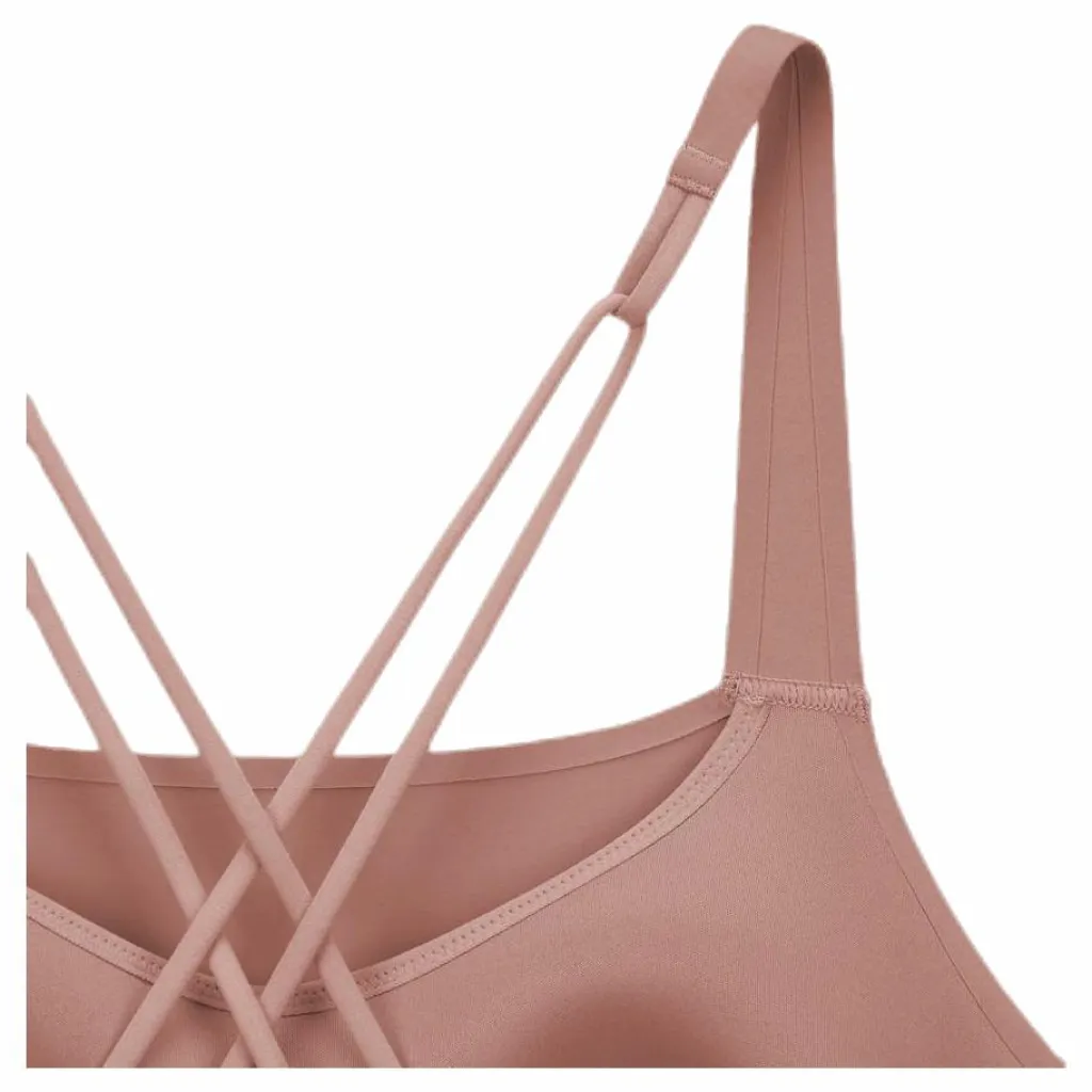 Strappy back design lets you move freely through your routine. Bonded seams feel smooth against your skin.