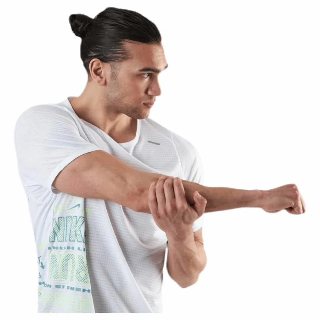 The Nike Rise 365 Top delivers versatile performance for everyday running. Designed for lightweight mobility, the top features soft fabric and has increased ventilation where you need it most. Graphics and colors are inspired by the finish line at major races.