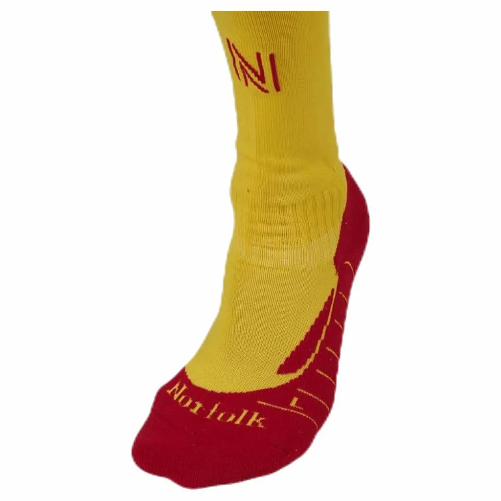 Genom att välja att använda en slitstark prestanda Polyamidfiber har vi designat en fotbollsocka som inte bara är tuff utan specifikt utformad för att absorbera fukten från dina fötter när du spelar och drar den bort från din hud. Detta hjälper till att minska friktionen och riskerna för att blåsor och sår bildas.Funktioner som du hittar i våra fotbollsstrumpor ’Alex’:Long Welt Top – Håller strumpan på plats och stoppar att den glider ner i benet när du spelar.Ankelstödssystem – Elastiskt ankelstöd håller strumporna och kuddarna om de bärs ordentligt på plats och hindrar strumporna från att gängas eller glida under foten.Återförstärkt polstring med hög klack och dämpning av foten – Med deras återinforcerade högklackade delar och deras formade fotdämpning hjälper dessa strumpor att skydda dina fötter från stötar och nötning medan du spelar.Kanaliserade fotavsnitt – Med sina kanaliserade fotkanaler kan fukt resa ändå från foten samtidigt som luften kan resa runt fötterna och hålla dem svala och bekväma.Toe Seam – Tjocka tån sömmar, INTE med dessa strumpor! De har en tå söm med låg profil, vilket betyder absolut ingen gnidning eller nötning över tårna …