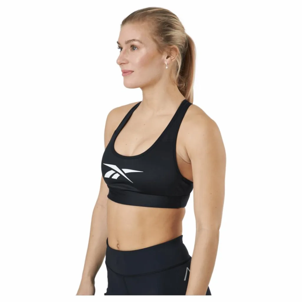 En snygg racerback-sport-bh är ett måste för vardagsträning. Denna Reebok-bh är gjord av andningsbart material med Speedwick-teknik för att hålla dig torr och bekväm i alla takter. Den erbjuder medium stöd för dansklasser, gympass eller spinn. Avtagbara kuddar ger valfri täckning.