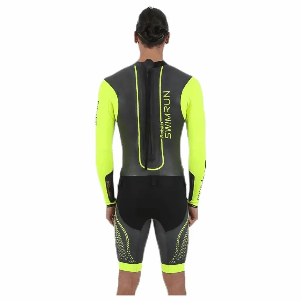 Våtdräkt specifikt utvecklad för swimrun-tävlingar. Zonanpassade paneler med bra stretch ger maximal rörelsefrihet för armar och ben medan avancerad Yamamoto coating minimerar friktionen från vattnet. Extra flytkraft vid bröst och lår hjälper dig att ligga rätt i vattnet. Ögla på ryggen för hopkoppling med lagkamrat. EGENSKAPER: Y39 – Yamamoto 39-cells neopren med marknadens bästa flytkraft, vilket medför att kroppen får en hög position i vattnet med minimalt vattenmotstånd. 4,5 mm neopren för värme och bra flytkraft. Yamamoto Super Composite Skin – coating som minimerar friktionen från vattnet. Super Sealed Cuff – förhindrar vatten från att tränga in i dräkten. Vortex Stroke System – expanderar när armen är utsträckt för extra kraft genom vattnet.Inbyggd visselpipa
