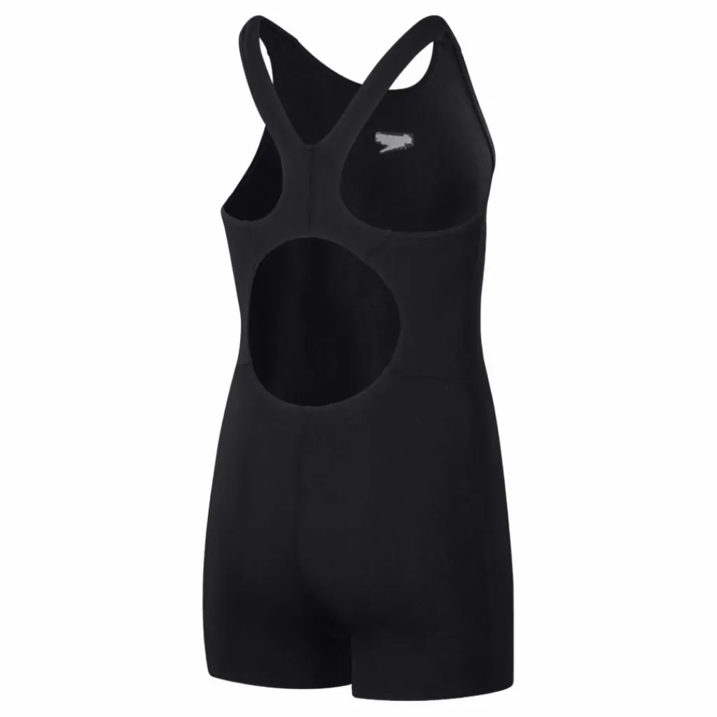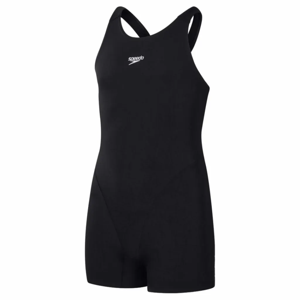 Med klassisk stil och en ikonisk siluett, är vår ECO Endurance+ Legsuit perfekt för vanliga unga simmare som föredrar mer täckning än en baddräkt. De bekväma Splashback-remmarna är placerade bort från axlarna, vilket ökar rörelsefriheten för ett obegränsat dopp. Enkel design, den har Speedo-logotypen – simmarens tecken på kvalitet. Tillverkad av vårt slitstarka ECO Endurance+-tyg, är det snabbtorkande och 100 % klorbeständigt. Dessutom är ett av garnerna i det här tyget tillverkat av 100 % avfall från konsumenter, såsom återvunna plastflaskor.