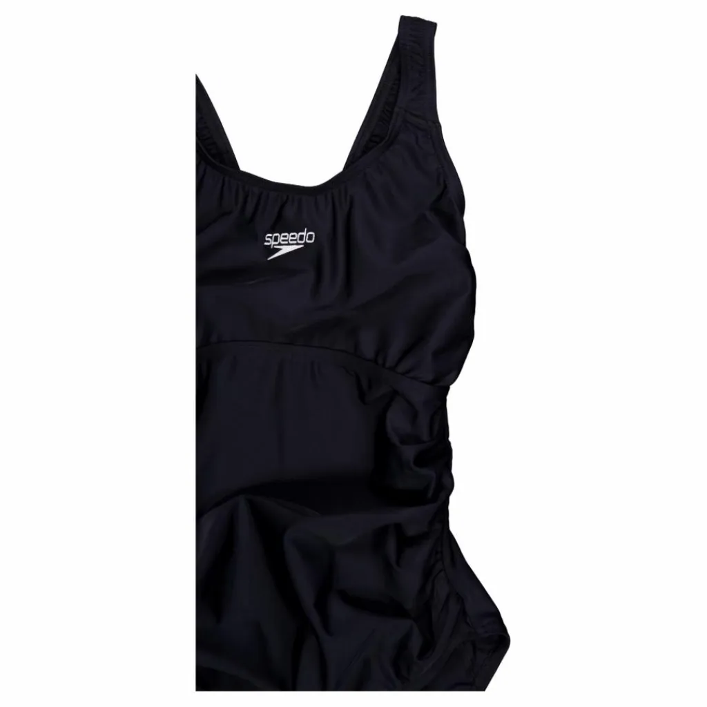 Stil och komfort för din växande bula. Älskar att simma under graviditeten med vår bekväma gravidbaddräkt, nu med vitt märke. Designad för din förändrade form, ger den en stretchig, bekväm passform och har smickrande rynkade detaljer på sidan och en bysthylla för lätt stöd. Ett utmärkt val för vanliga poolpass, vårt EnduraFlex-tyg erbjuder högre klorbeständighet än vanliga badkläder och passar som nya längre med CREORA® HighClo™. Dessutom är nylongarn i EnduraFlex-tyget tillverkat av 100 % avfall från konsumentförbrukaren, såsom tygavfall från fabriker.