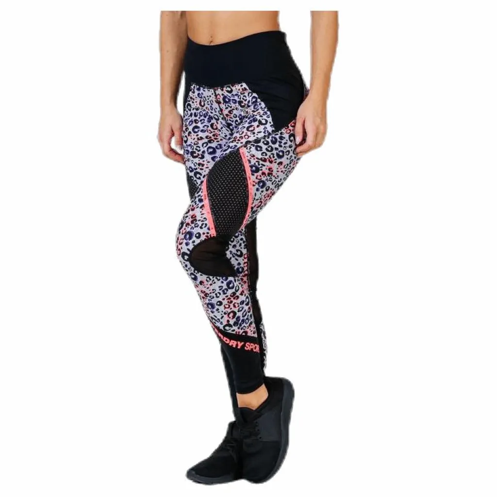 Superdry Active leggings med meshpaneler för tjejer. Dessa leggings med heltäckande tryck är perfekta att träna i eftersom de är gjorda av ett fuktavledande material med infälld mesh som andas. Byxorna har väl synliga reflexdetaljer, en bakficka med dragkedja samt ett antal Superdry Sport-loggor.