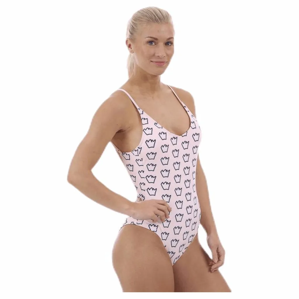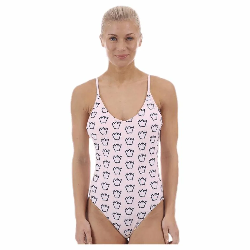 Julia Swimsuit är v-ringad framtill och har en u-formad rygg. Julia swimsuit har ett mönster av svea kronan i härliga färger samt ett svea print strax under u-ringningen baktill.
