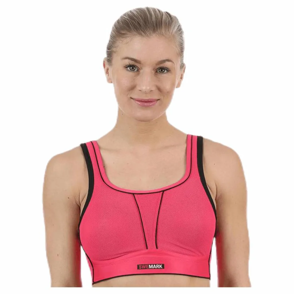 Storsäljande Sport-BH med fantastiskt stöd Sport-BH med formpressade kupor med dubbla lager i kuporna som ger en extrem support och ett bra stöd åt bysten. Vadderade, reglerbara axelband. Knäpping bak med Soft Seal för större komfort. Bekväm hysk- och hakknäppning med invändiga sömmar för att förhindra skav mot huden. Öko Tex certifierade textilier. Tillverkad i ett slitstakt Cool Max material som låter huden andas och för bort värme och fukt från kroppen. Öko Tex certifierade textilier. Fler fördelar: – Racerback design – Bred resår under bysten för extra stöd Material: 55% Polyamid, 35% Polyester (COOL MAX), 10% Elastan.