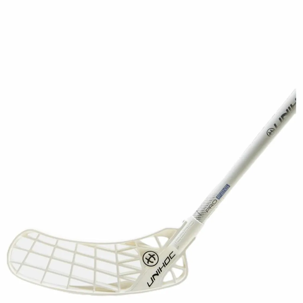 ICONIC SUPERSKIN PRO 26 är en nyhet den här säsongen. Den ingår i den nya SUPERSKIN-serien som är Unihocs nya lättviktskategori av klubbor. Klubban har en stilren design i vitt och blått och ett hårt skaft i 26-flex. Detta är en klubba med en utmärkt balans i skaftet som ger dig en skön känsla och bra bollhantering. Utrustad med skottbladet ICONIC i PE-plast. VIKT: 210g (96cm) BLAD: ICONIC BLADMATERIAL: Regular PE SKAFT: 95% carbon 5% glasfiber SKAFTPROFIL: RUND FLEX: 26 MM GREPPLINDA: SUPERSKIN grip