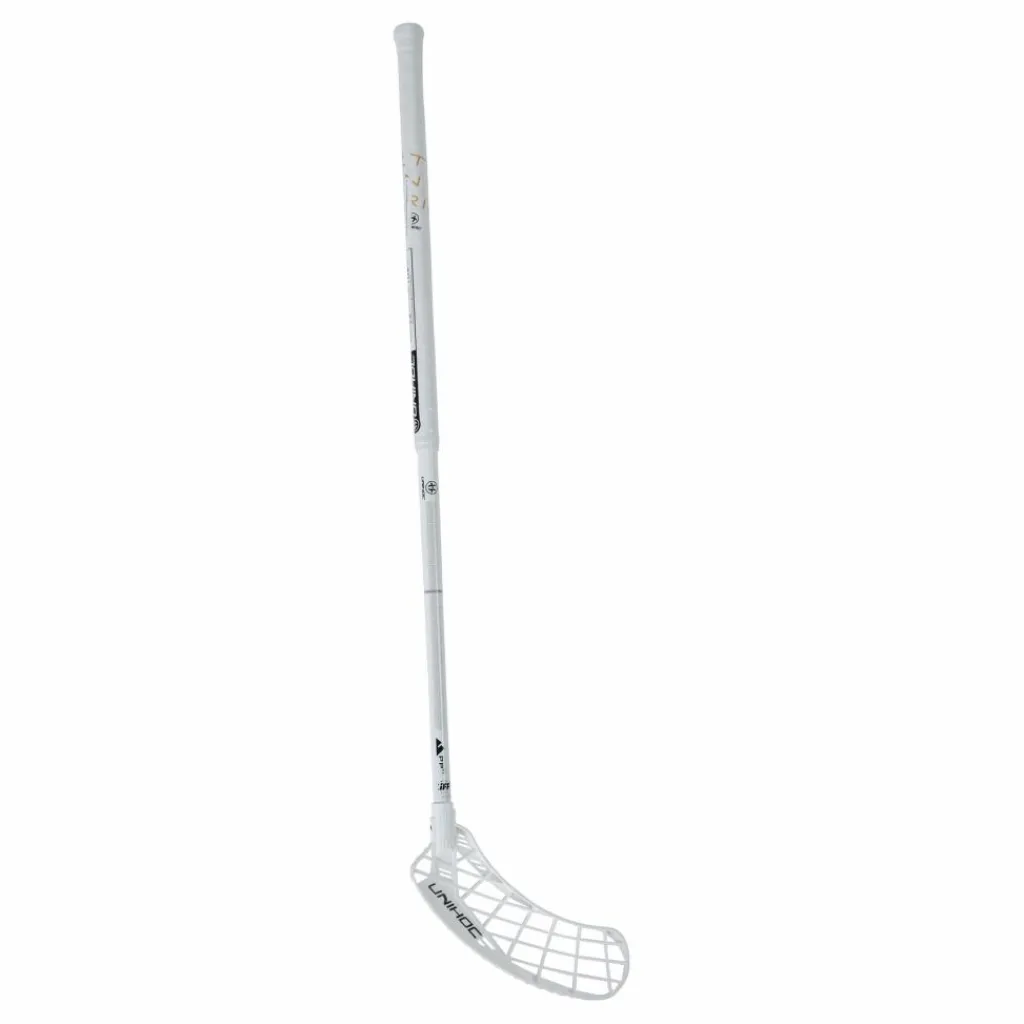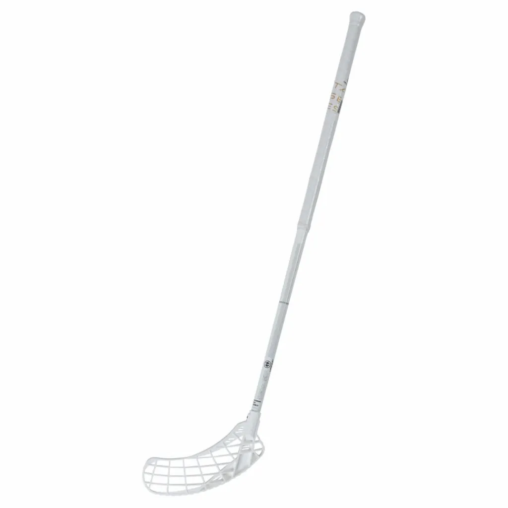 En komposit innebandyklubba med ett skaft av komposit och ett plastblad. Stickan väger 480 gram.